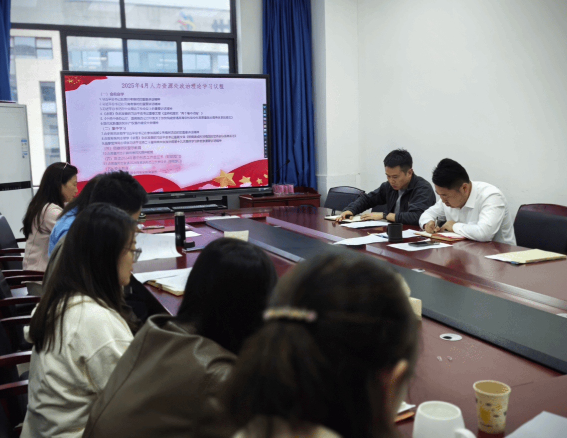 2025年4月29日,人力资源处在智联楼B501会议室开展本月政治理论学习。会议由周鑫处长主持。