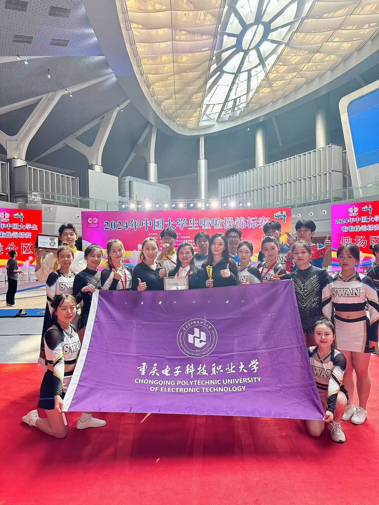 重庆电子科技职业大学啦啦操队自2007年成立以来,在校院领导的关心和支持下,在彭天娥老师的积极带领下,队员们刻苦训练、精益求精,他们用啦啦操展现了重电人的团队精神、时尚和青春活力,赢得了一次次地掌声和喝彩。经过十余年的努力,在国家级比赛中获得了70余个单项冠军。