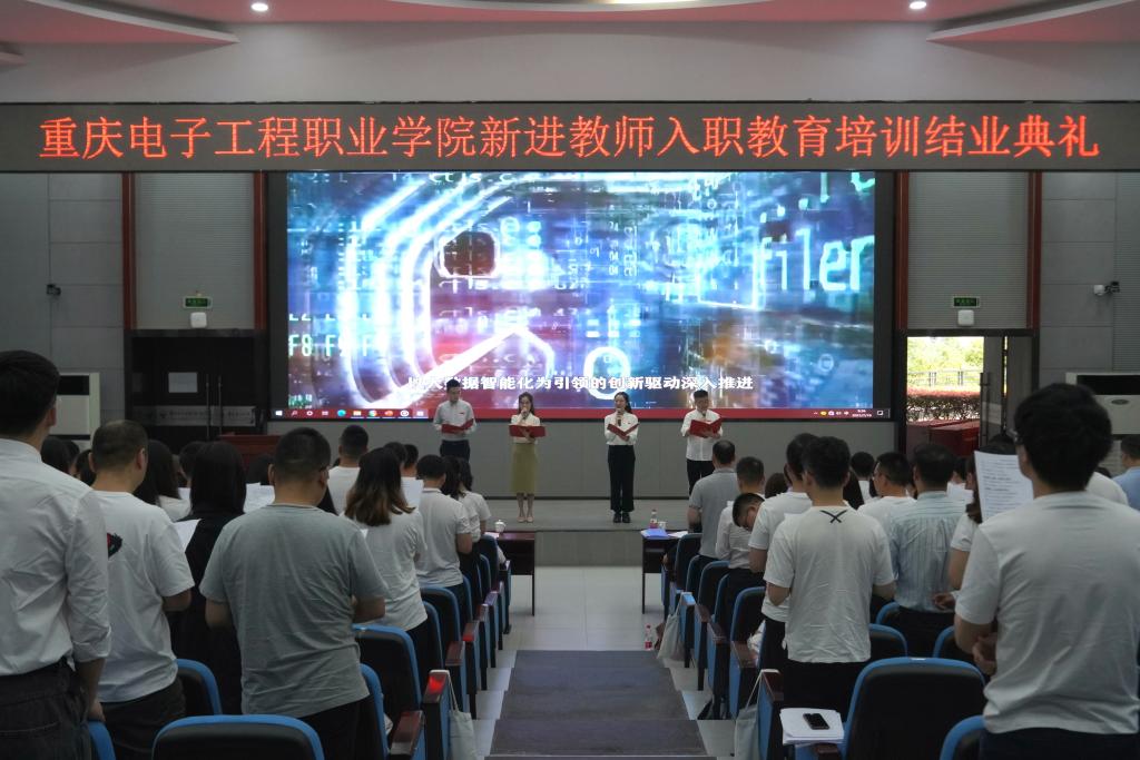 成果汇报环节,培训班班主任聂浩虹对培训情况作了回顾,重温了充实而又美好的培训时光,并代表142名参训教师对授课老师和人力资源处的辛勤付出表示衷心感谢。新教师通过《舞动重电》《话说这五天》《新时代重电人》展示了入职培训的成果与收获,表达出对职业教育事业和重电的热爱。新教师代表陈元媛、凌星元、郑浴鑫分享了培训的收获与感想,他们表示,通过培训不仅了解了学校的历史和理念、感受了学校的文化和底蕴、熟悉了学校的规章和制度,更学习了如何提升综合素养和职业技能。