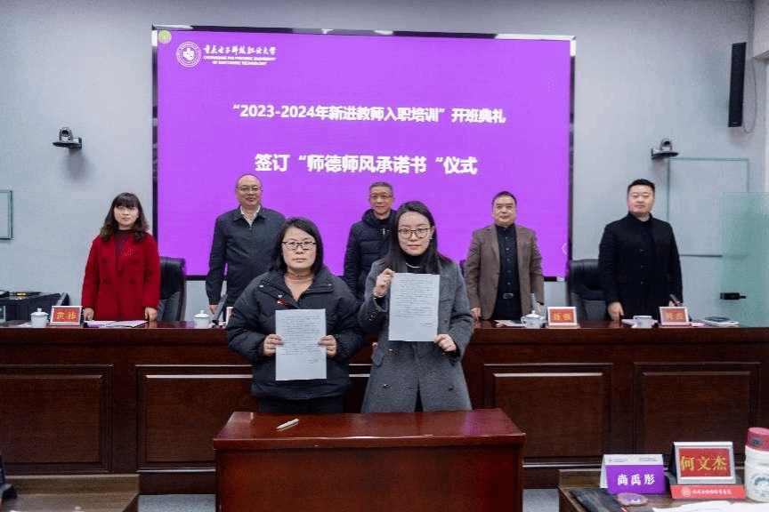 全体新进教师郑重签订了师德师风承诺书,承诺将严格遵守教师职业道德规范,以身作则,树立良好的师德师风形象。