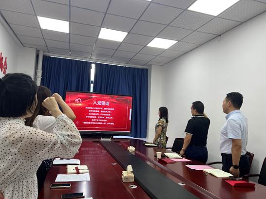 集体政治生日阶段,支部为聂强、贺彬恢、何治江、史胜、张建梅5位党员同志举行了简单而庄重的政治生日,人力资源党支部书记周鑫同志为五位同志书写生日寄语,送上党员政治生日贺卡和温馨祝福,校长聂强同志带领大家重温入党誓词。