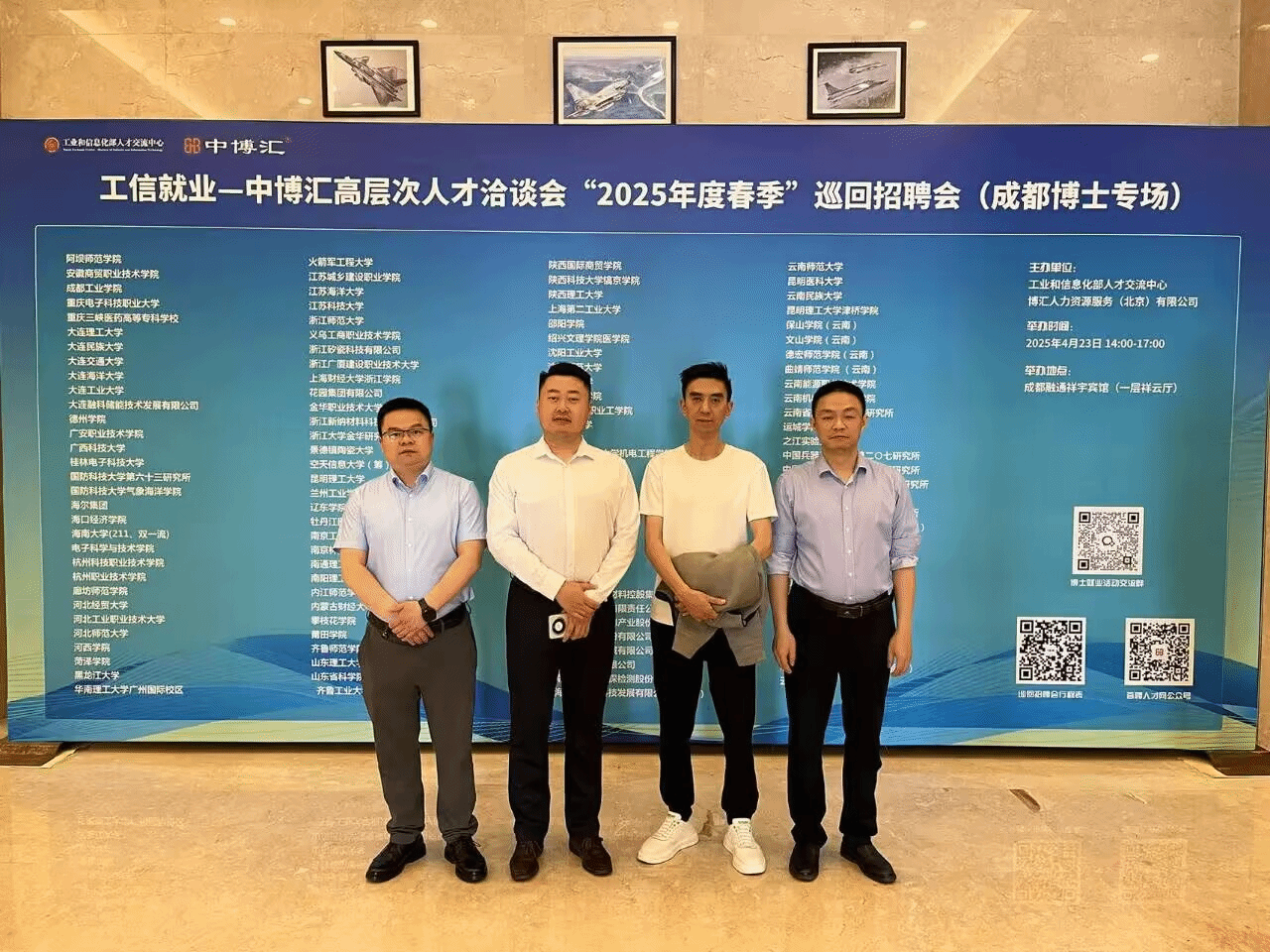 2025年4月23日,“工信就业——中博汇高层次人才洽谈会”2025年度春季巡回招聘会博士专场在成都启动,学校党委常委、党委教师工作部部长、人力资源处处长周鑫带队,党委委员、智能制造与汽车学院院长叶勇、党委委员、智慧健康学院党总支书记谌喜兵、智能制造与汽车学院办公室主任封明亮参会。